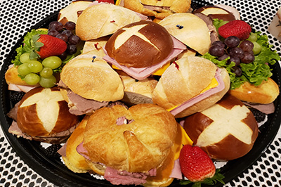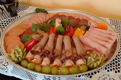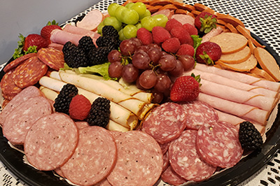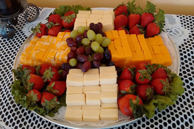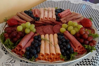 Cold Platter Catering uses high quality meats, fresh vegetables, fancy crackers of all sorts, St-Albert cheeses, homemade cheese balls, fancy buns, assorted pickles, homemade salads, finger desserts and assorted cheese cakes.