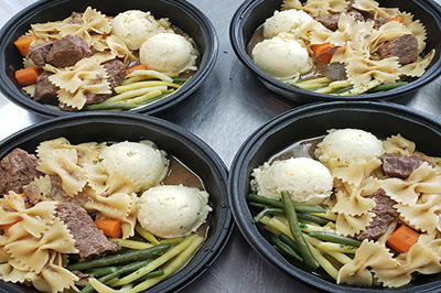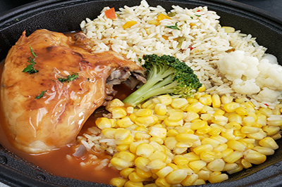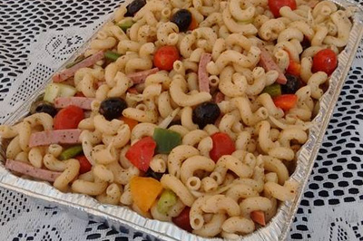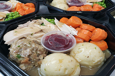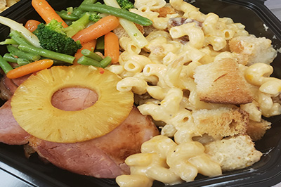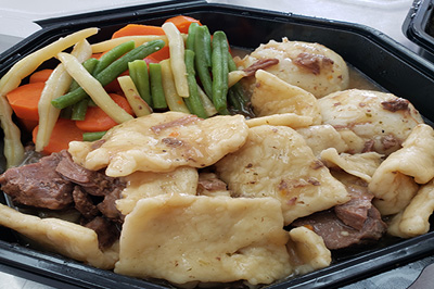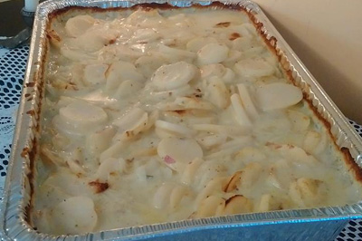 One choice of meat, one choice of veggies, one choice of potato, one choice of (rice or pasta), one salad choice, gravy, and buns & butter - $46 per plate.