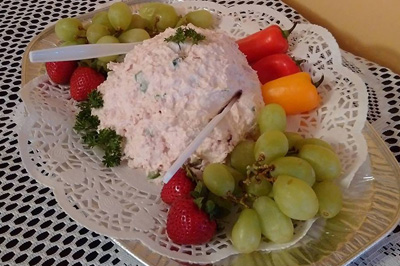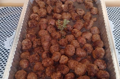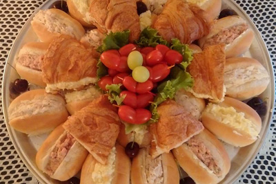 St-Albert cheese, assorted tea sandwiches, fancy bun sandwiches, pickles, fancy crackers, two salads of your choice, homemade meatballs, baked beans - $30 per plate.